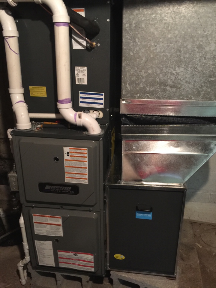 New 96% efficient Amana furnace with matched air conditioner, Aprilaire automatic humidifier, and Ecobee wifi thermostat!